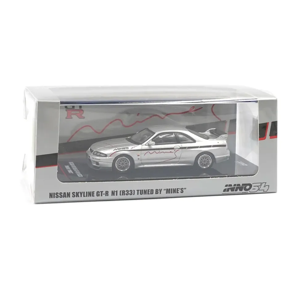Inno 1/64 Nissan Skyline GT-R (R33) "Tuned by Mine's" Silver IN64-R33-MINES-S